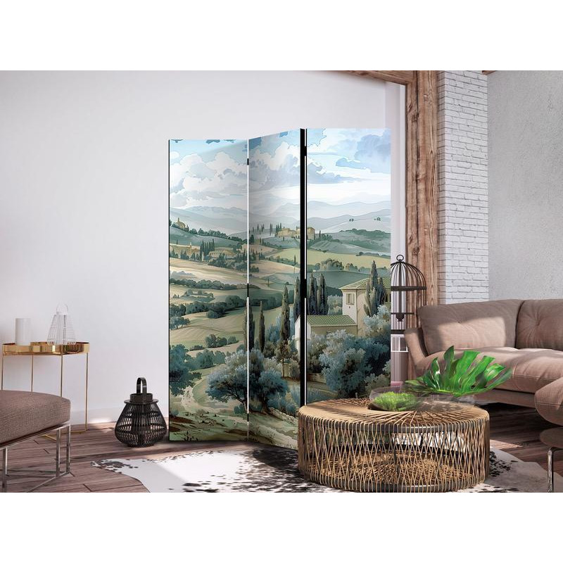 Paravent "Paravent - Landscape with Green Fields and Trees - Tuscan Sunny View"