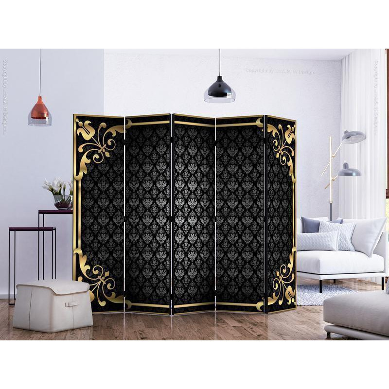 Raumteiler Paravent "Paravent - A little bit of luxury II" können Sie Räume in Zonen aufteilen – das Schlafzimmer in Schlaf- und Garderobenbereiche, das Wohnzimmer in Sitz- und Essbereiche. Gestalten Sie Ihre Home-Office-Ecke und grenzen Sie den Bürobereich im Wohnzimmer mit einem stilvollen