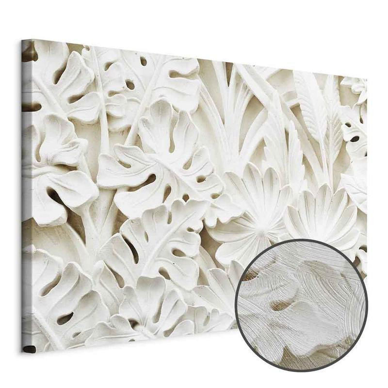 Bilder Wohnzimmer. Dekorieren Sie die Wände in Ihrem privaten Bereich mit einem Bild "Leinwandbild - Ceramic Leaves (1 Part) Wide". Wir empfehlen