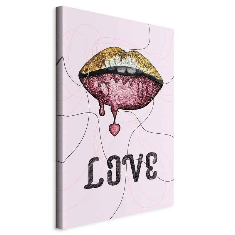 Bilder Wohnzimmer. Dekorieren Sie die Wände in Ihrem privaten Bereich mit einem Bild "Leinwandbild - Liquid Lips (1 Part) Vertical". Wir empfehlen