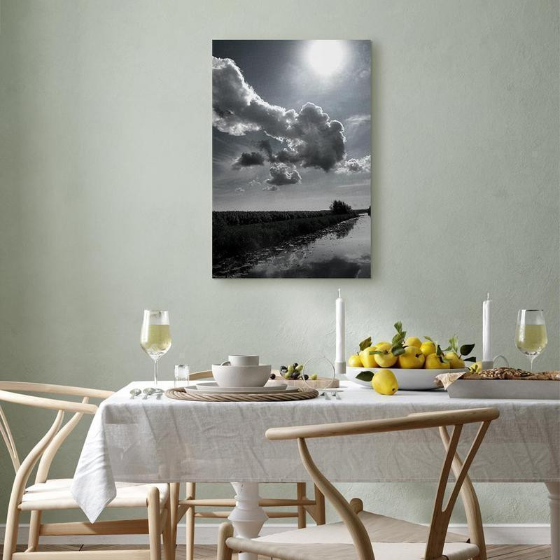 Bilder Wohnzimmer. Dekorieren Sie die Wände in Ihrem privaten Bereich mit einem Bild "Leinwandbild - Sun Over Clouds (1-part) - Sky Reflection in Water Field". Wir empfehlen