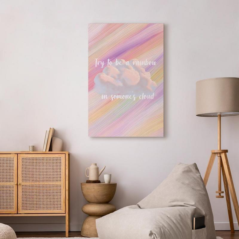 Bilder Wohnzimmer. Dekorieren Sie die Wände in Ihrem privaten Bereich mit einem Bild "Leinwandbild - Try to Be a Rainbow (1 Part) Vertical". Wir empfehlen