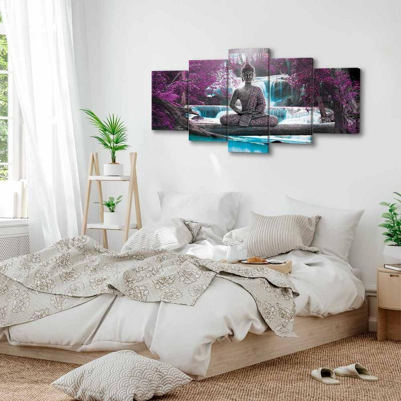 Bilder Wohnzimmer. Dekorieren Sie die Wände in Ihrem privaten Bereich mit einem Bild "Leinwandbild - Waterfall and Buddha". Wir empfehlen