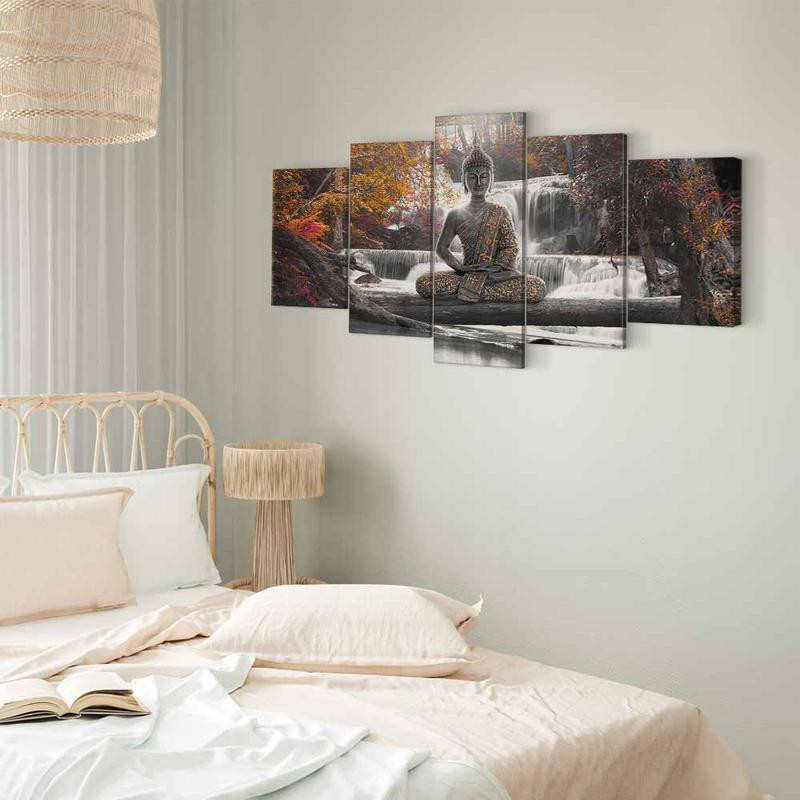 Bilder Wohnzimmer. Dekorieren Sie die Wände in Ihrem privaten Bereich mit einem Bild "Leinwandbild - Autumn Buddha". Wir empfehlen