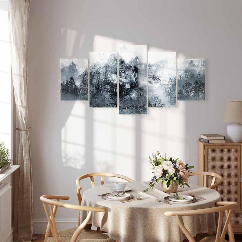 Bilder Wohnzimmer. Dekorieren Sie die Wände in Ihrem privaten Bereich mit einem Bild "Leinwandbild - Mountain Predator (5 Parts) Wide". Wir empfehlen