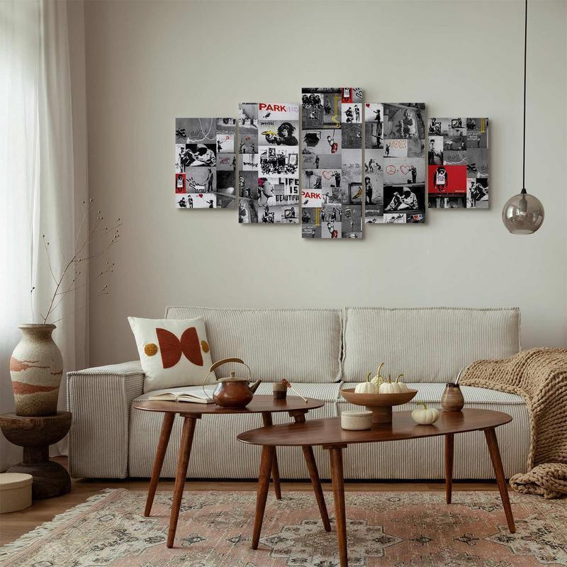 Bilder Wohnzimmer. Dekorieren Sie die Wände in Ihrem privaten Bereich mit einem Bild "Leinwandbild - Street Art: Banksy IV". Wir empfehlen