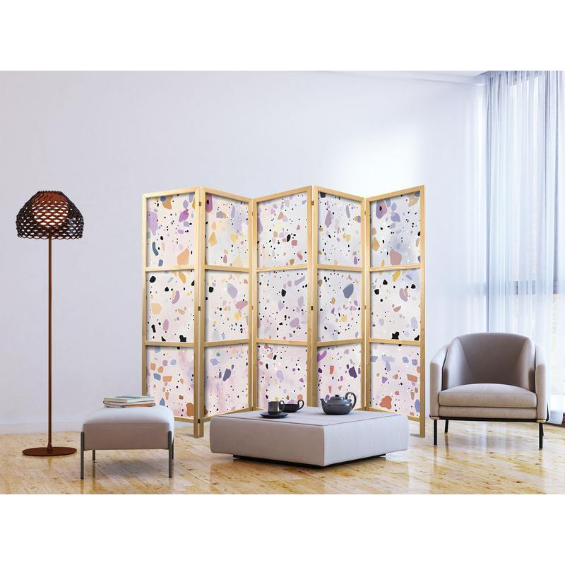 Japanisches Paravent "Japanischer Paravent - Confetti-Style Terrazzo - Purple-Pink - Colorful Pattern." ist auch eine gute Option für Schönheitssalons. Wenn Sie keine Wände bauen wollen, deren Layout Sie nach einer gewissen Zeit langweilen könnte, ist ein japanischer