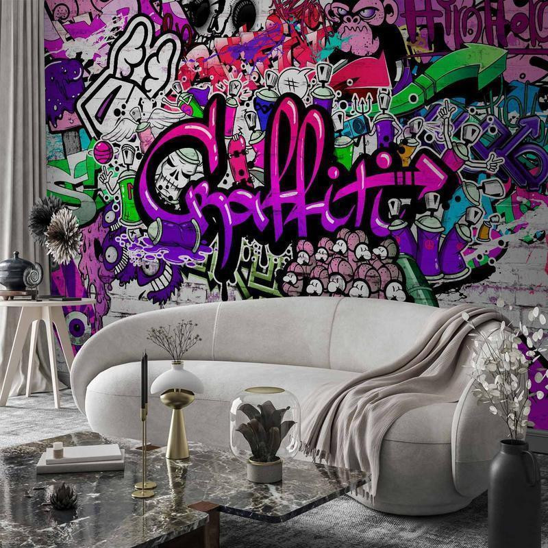 Fototapete "Fototapete - Purple Graffiti" wird Ihr Interieur völlig verändern. Hier finden Sie, was Sie brauchen.