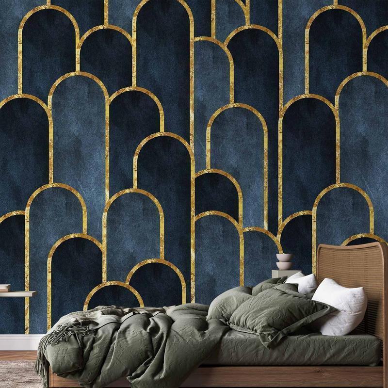 Fototapete "Fototapete - Gold and Navy Blue Pattern" wird Ihr Interieur völlig verändern. Hier finden Sie, was Sie brauchen.
