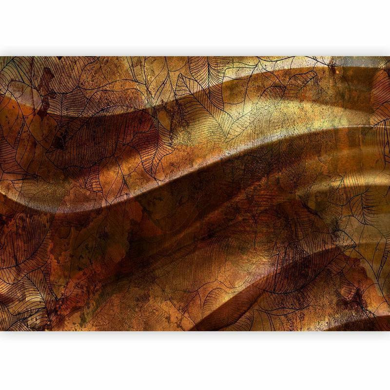 Fototapete "Fototapete - Liquid gold - abstract wavy composition with leaf patterns" wird Ihr Interieur völlig verändern. Hier finden Sie, was Sie brauchen.