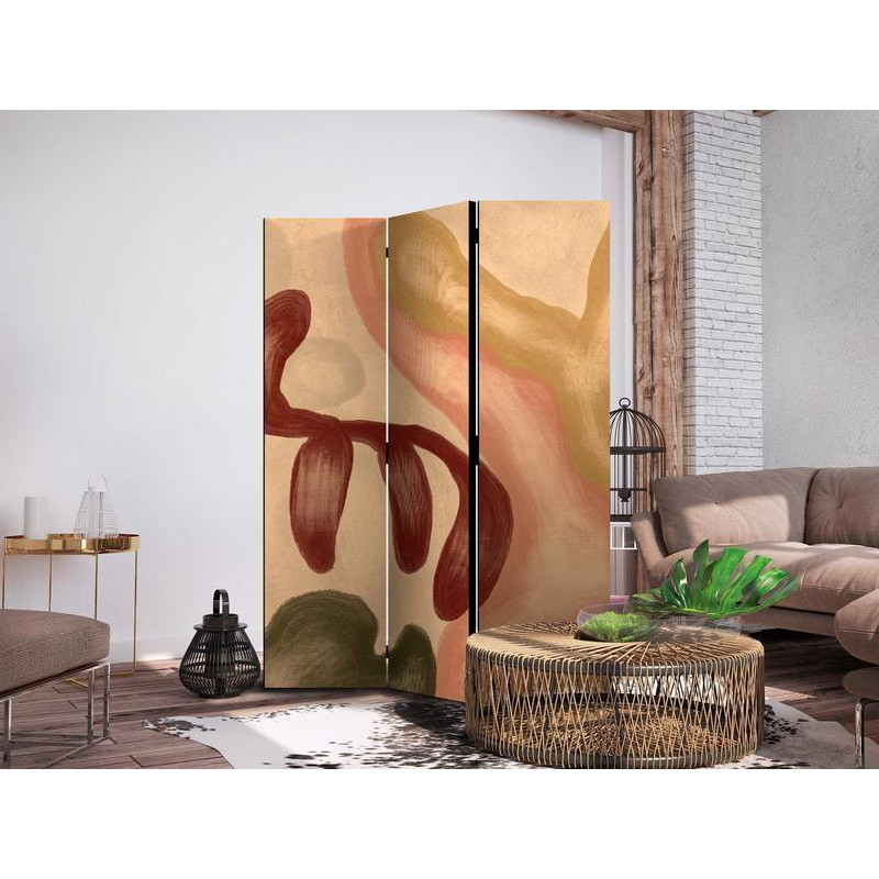 Room Divider - Worn Figures - Shapes in Lime Wash Technique in Warm Colors