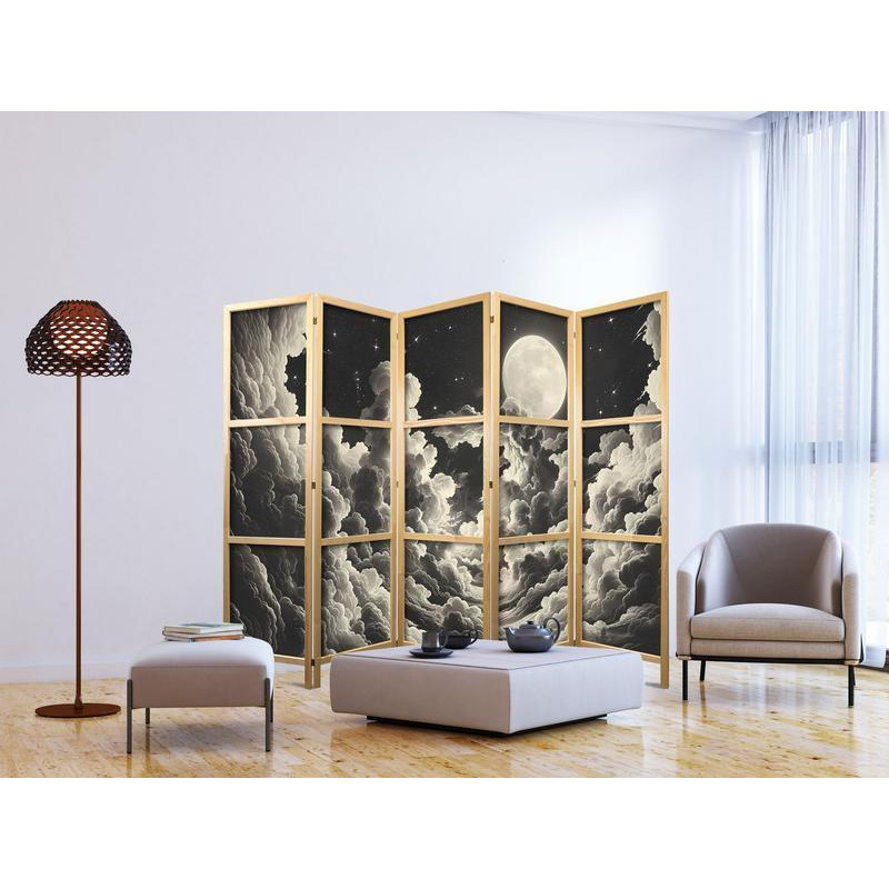 Japanese Room Divider - Moon and Stars Singing Among the Great Clouds