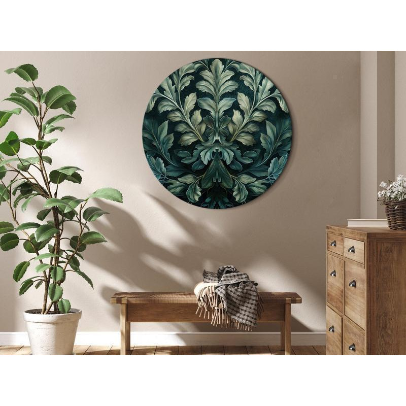 • Round Canvas Print - Dark Green Victorian Leaves: Botanical Carved Composition