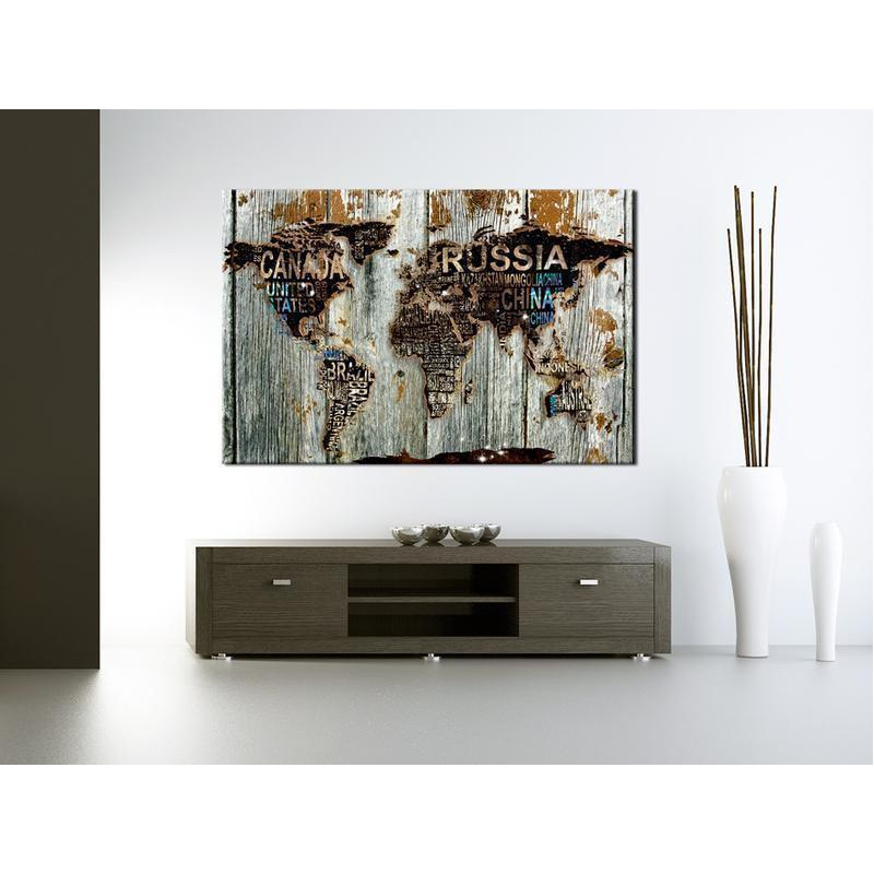 Decorative pinboard "Decorative Pinboard - Wooden Border" is a product for people searching for original wall decorations. Thanks to ecological material and interesting design, the ordinary cork board changes into a stylish decoration, which you could use in different ways. You can pin your notes and photos and mark the visited places on the map. Decorative pinboard "Decorative Pinboard - Wooden Border" is much lighter from the traditional wall decorations. Thanks to that the decorative cork boards can be hung anywhere in your apartment or office. The canvas print is applied on the cork board. Print is characterized by bold colors and reflects even the finest details. Stick in and pin your notes and create your own individual design on your wall! The cork map is an excellent gift idea for travel lovers!