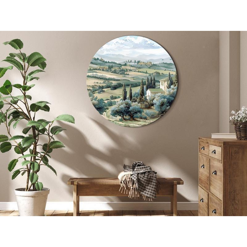 Round Canvas Print - Landscape with sunny green fields