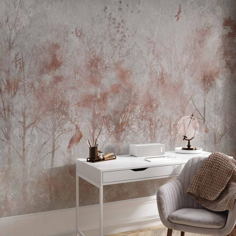 • Wall Mural - Autumn landscape - abstract with trees and birds on a textured background