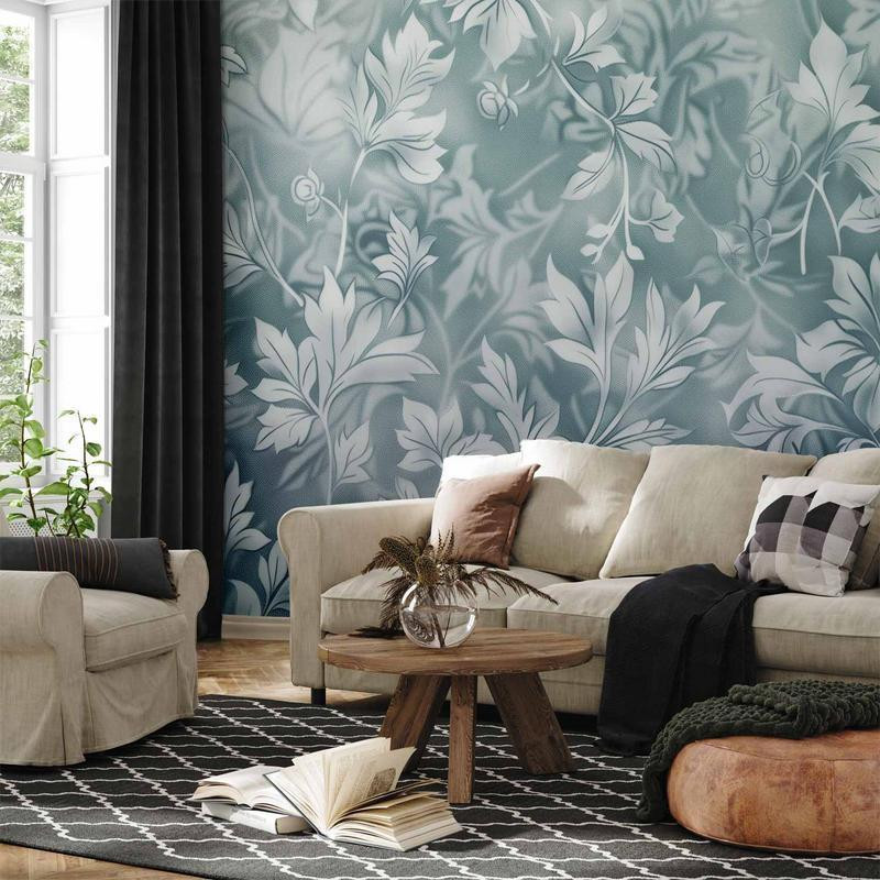 • Wall Mural - Ornaments in Worn Muted Turquoises: Delicate Plant Pattern