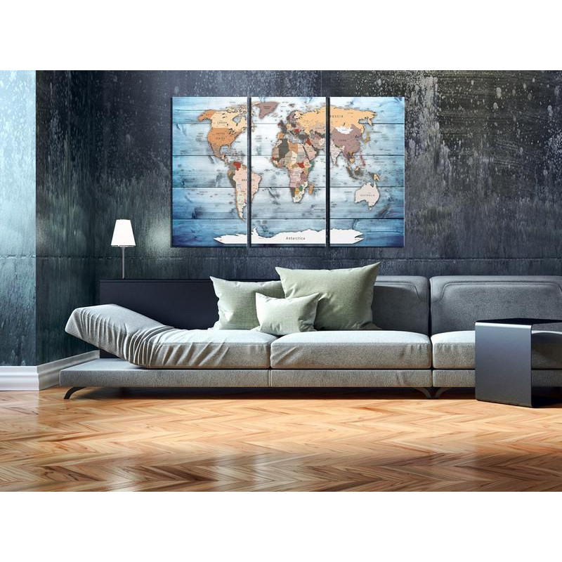 Tablero de corcho "Tablero de corcho - Sapphire Travels" es un producto dedicado a personas que buscan una decoración original de pared. El material ecológico y interesante diseño cambia un ordinario tablero de corcho en una decoración con estilo que puedes utilizar en cual quier manera. En tablero de corcho se puede fijar chinchetas marcando los sitios en la mapa o dejando algunas notas. Tablero de corcho "Tablero de corcho - Sapphire Travels" esta mucho mas ligero que tradicionales decoraciones de pared. Así un decorativo tablero de corcho se puede poner en cualquier lugar en tu hogar o en la oficina. El lienzo con impresión esta puesto por encima de corcho. La impresión tiene buena definición de los colores y muestra todos los detalles. Ponte las chinchetas o las notas y crea tu propia decoración en tu pared.