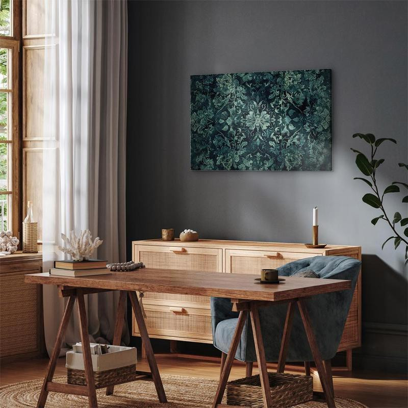 • Seinapilt - Oriental Pattern Carpet: Emerald Ornaments and Worn Patterns