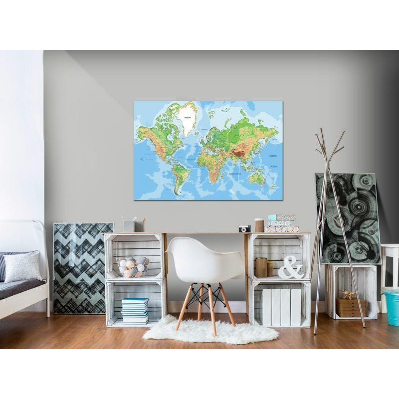 Dekoratiivne korkplaat"Pilt korkplaadil - World Geography" on toode inimestele, kes otsivad originaalset seinakunsti. Tänu ökoloogilisele materjalile ja huvitavale disainile muutub tavaline korgiplaat stiilseks kaunistuseks, mida saaksite kasutada erineval viisil. Võite sinna oma märkmeid ja fotosid kinnitada ning märkida kaardile külastatud kohti. Dekoratiivne koekplaat on tavapärasest seinakunstist palju kergem. Tänu sellele saab oma korteri või kontori seinale riputada korkplaate. Lõuendiprinditakse korkplaadile. Trükki iseloomustavad julged värvid, mis peegeldavad isegi parimaid detaile. Kinnitage oma märkmed plaadile ja looge enda seinale oma individuaalne disain!