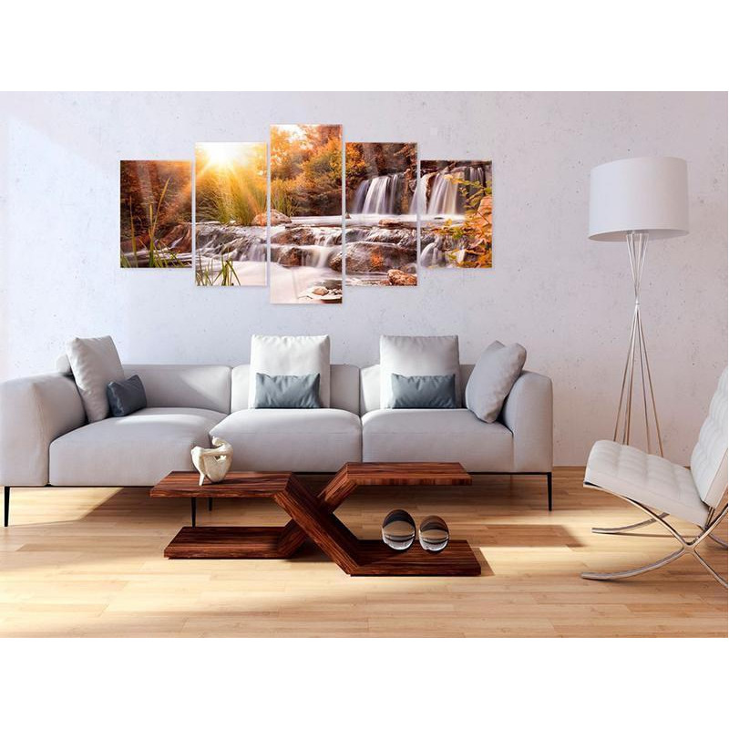 Akryylilasitaulu "Akryylilasitaulu - Autumn's Valley" on erinomainen idea modernien sisätilojen sisustukseen. Sopii täydellisesti erikoisiin ratkaisuihin ja muodostaa mielenkiintoisen vaihtoehdon perinteisille seinäkoristeille esim. lasipaneeleina tai keittiön koristelaseina. Painatus akryylilasilla vetää katseita puoleensa syvyysvaikutuksen ansiosta ja näyttää kauniilta edustustiloissa. Uudenaikaisen painatustekniikan ja värien korkean laadun ansiosta sille on luonteenomaista kaunis kiilto.Akryylilasitaulut ovat keveitä, helppoja puhdistaa ja kestävät kosteuden vaikutusta, minkä ansiosta ne sopivat erinomaisesti sekä olohuoneeseen, makuuhuoneeseen, kylpyhuoneeseen ja jopa terassille. Akryylilasi grafiikalla saavuttaa uskomattoman 3d-vaikutuksen valon läpäisevyyden ansiosta.