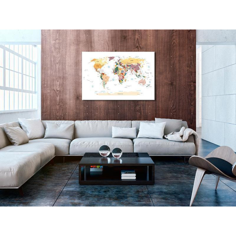 Korkkitaulu "Korkkitaulu - World Map" on tuote henkilöille, jotka etsivät erikoisia seinäkoristeita. Ekolooginen materiaali ja mielenkiintoinen malli "Korkkitaulu - World Map" saavat aikaan sen, että korkkitaulu muuttuu tyylikkääksi lisäksi, jota voit käyttää eri tavoin. Korkkitauluihin voidaan kiinnittää nastoja, joilla merkitset karttaan paikat, joissa olet käynyt, tai niillä voit kiinnittää muistilappuja. Korkkitaulu "Korkkitaulu - World Map" on paljon kevyempi kuin perinteiset seinäkoristeet. Sen ansiosta koristeelliset korkkitaulut voidaan ripustaa mihin paikkaan tahansa asunnossasi tai toimistossa. Painettu kangas on levitetty korkkilevylle. Sen ansiosta painatukselle on luonteenomaista selkeät värit ja tuo esille pienimmät yksityiskohdat. Kiinnitä siihen nastoja tai muistilappuja ja luo seinällesi oma yksilöllinen mallisi. Korkkikartta on erinomainen lahjaidea matkailijoille!