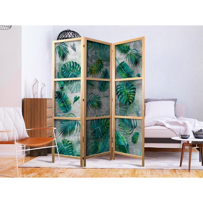paravent intérieur japonais "Paravent japonais - Leaves on the Concrete I" disponible dans l'offre : peut se composer de trois ou de cinq parties. Le