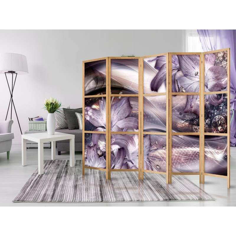 paravent intérieur japonais "Paravent japonais - Lilies on a Wave" disponible dans l'offre : peut se composer de trois ou de cinq parties. Le