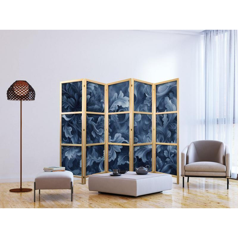 paravent intérieur japonais "Paravent japonais - Abstract Ornaments - Dark Blue Victorian Leaves" disponible dans l'offre : peut se composer de trois ou de cinq parties. Le