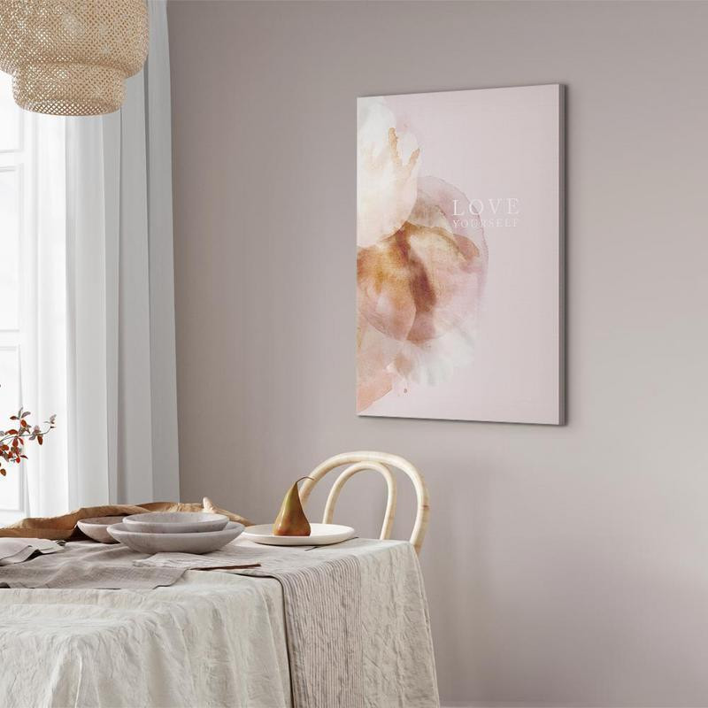 Les tableaux disponibles dans notre offre sont créés à l’aide de l'impression numérique sur toile de la plus haute qualité pour embellir votre intérieur. L’impression numérique sur toile sous la forme d’un tableau unit la tradition de la peinture sur toile avec la technologie moderne. Un effet final de ce mariage est le tableau moderne "Tableau - Love Yourself (1 Part) Vertical" qui peut s’accorder parfaitement avec le style de votre pièce. Les tableaux complètent la décoration de chaque intérieur et lui donnent du caractère. La décoration murale sous la forme des tableaux constitue la dernière touche dans la décoration d’intérieur. Les tableaux déco complètent la décoration de chaque espace et la rendent plus accueillante. Souvent, ils constituent une touche personnelle dans l’intérieur, en reflétant la personnalité et le goût des habitants. Les tableaux déco que nous vous proposons dans notre offre sont des impressions numériques de la plus haute qualité réalisées sur toile. Cette technique de réalisation permet d’obtenir une image possédant une richesse de détails dont les couleurs sont vives et très fraîches. Un tableau moderne s’accorde parfaitement à des intérieurs aménagés dans le style moderne, mais aussi dans le style minimaliste et dans le style zen.