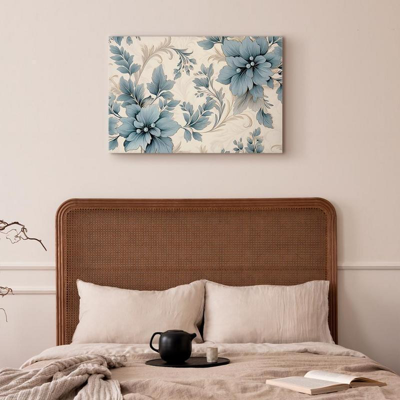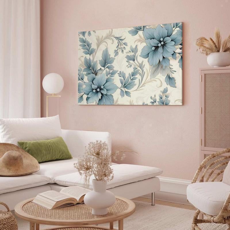 tableau moderne "Tableau - Turquoise Flowers in Retro Ambience Floristic Ornaments" qui peut s’accorder parfaitement avec le style de votre pièce. Les tableaux complètent la décoration de chaque intérieur et lui donnent du caractère. La décoration murale sous la forme des