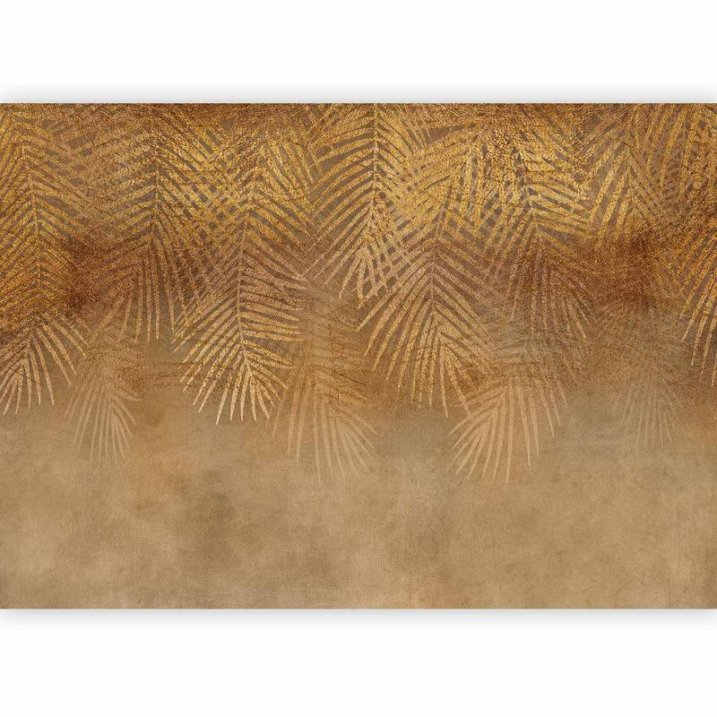 • Carta da parati - Abstract nature in beige - composition with golden exotic leaves