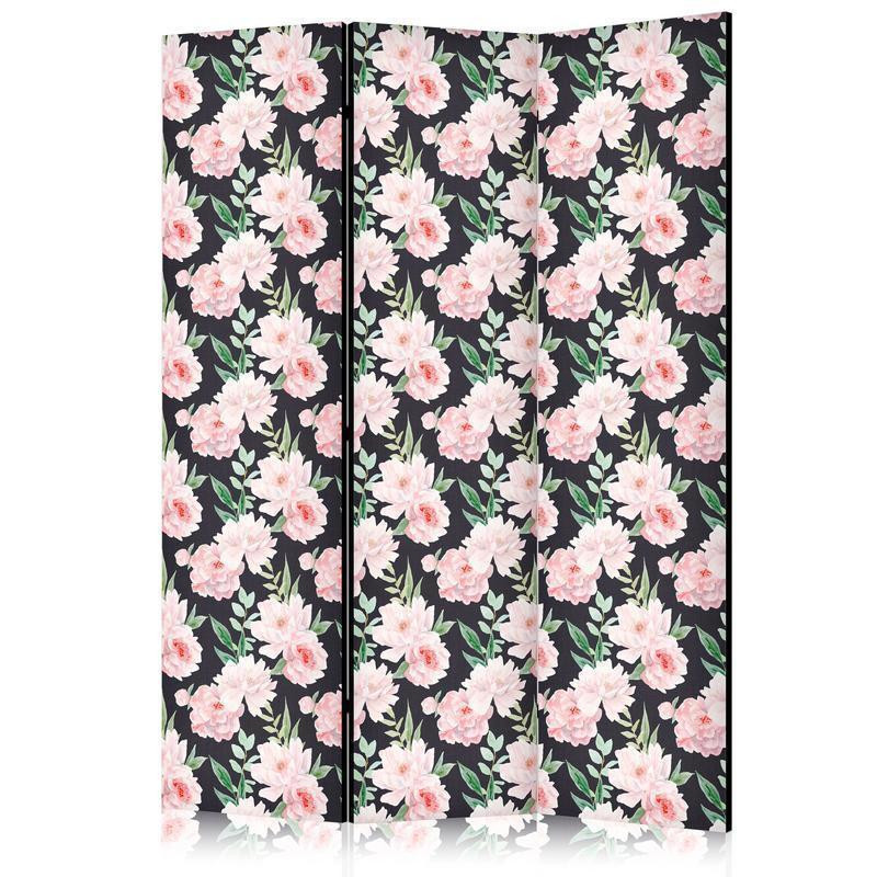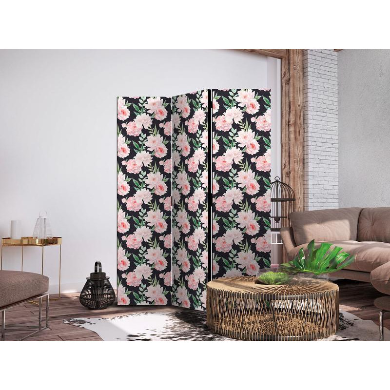 • Paravento - Peonies - Pink Flowers and Green Leaves on a Graphite Background