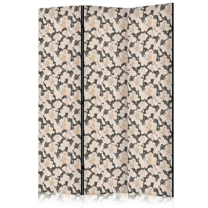 • Paravento - Among Pink Shrubs - White and Beige Rabbits on a Blooming Meadow