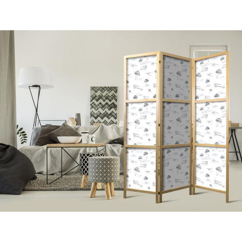 Paravento giapponese - Watercolor - Airplane Show on a Bright Sky with Delicate Clouds