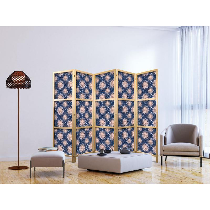 • Japoniška kambario pertvara - Sunny Patterns - Repeating Sun Motif on a Navy Background
