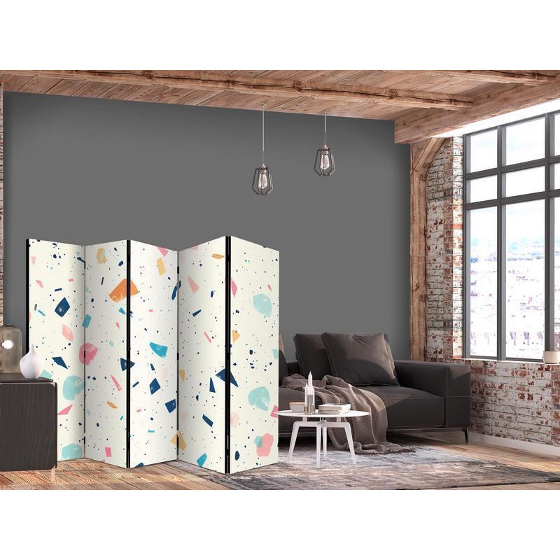 Aizslietnis - Terrazzo with Multicolored - Large Elements - Cheerful Pattern on a Light Background