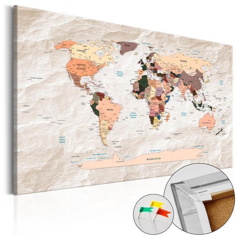 Dekoratīvs ziņojumu dēlis "Attēls uz korķa - Stony Oceans" ir produkts, kas ir radīts cilvēkiem, kuri meklē oriģinālus sienas dekorus. Pateicoties ekoloģiskajam materiālam un interesantajam dizainam “x”, parasts korķa ziņojumu dēlis kļūst par stilīgu dekoru, ko varat izmantot dažādos veidos. Piespraudiet savas piezīmes un fotogrāfijas un atzīmējiet apmeklētās vietas kartē. Dekoratīvais ziņojumu dēlis "Attēls uz korķa - Stony Oceans" ir daudz vieglāks nekā tradicionālie sienu dekori. Pateicoties tam, dekoratīvo korķa dēli iespējams piekārt jebkurā vietā Jūsu dzīvoklī vai birojā. Korķa dēlis ir apvilkts ar apdrukātu audumu. Apdruka ietver košas krāsas un tajā redzamas pat sīkākās detaļas. Piestipriniet savas piezīmes un veidojiet savu individuālo dizainu pie sienas! Korķa karte ir lieliska dāvana ceļotājiem!