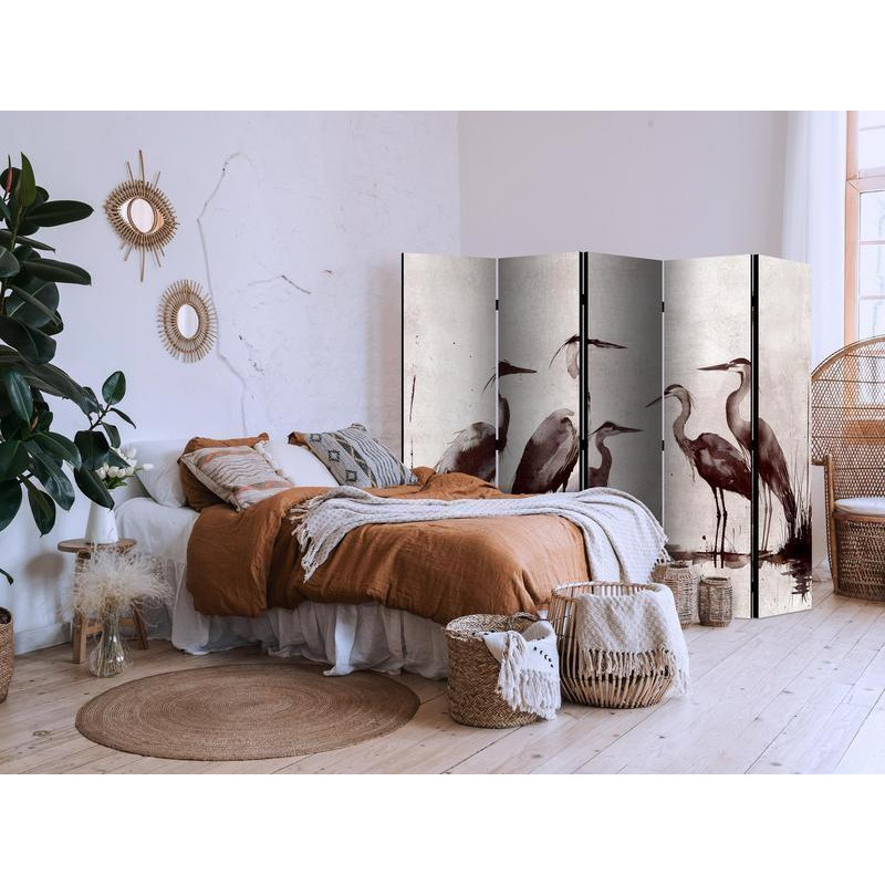 Vouwscherm - Herons painted with ink
