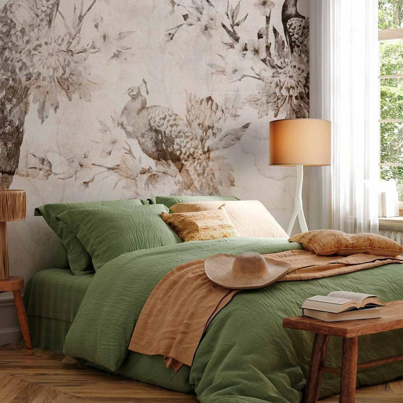 Fotobehang - Peacocks in Delicate Beige
