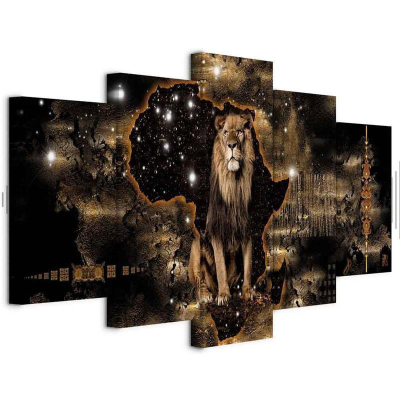 • Schilderij - Golden Lion (5 Parts) Wide