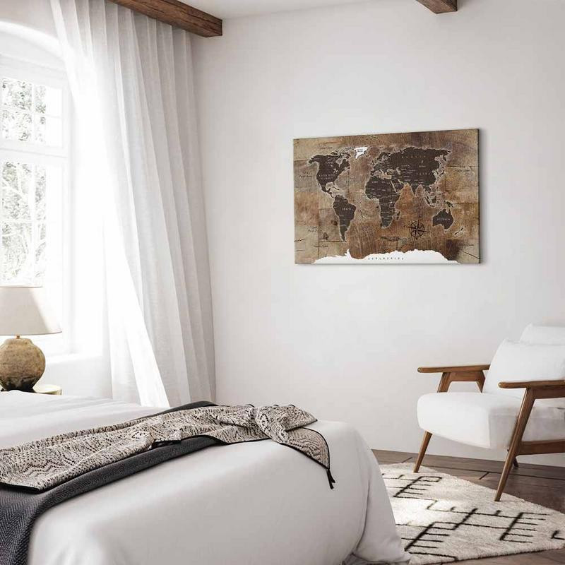 • Schilderij - World Map: Wooden Mosaic