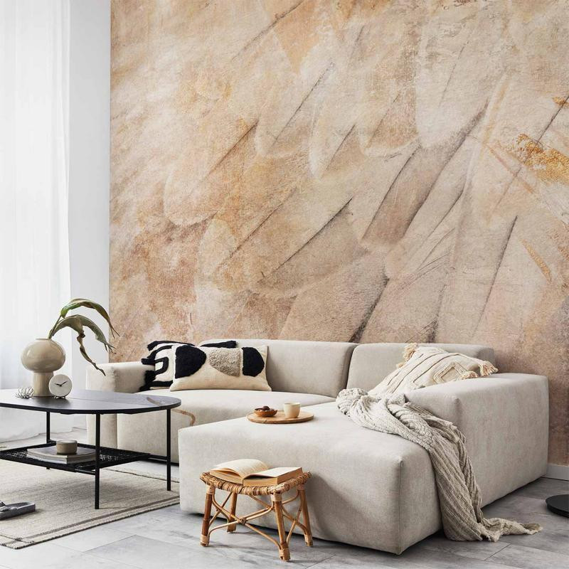 Mural de parede - Birds wings - minimalist close-up on beige feathers with pattern