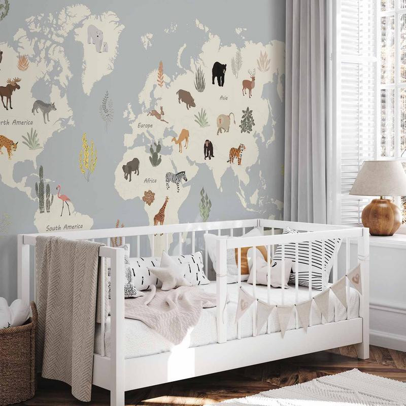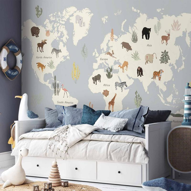 Mural de parede - Pastel Planet - Animals and Underwater Plants on a Map