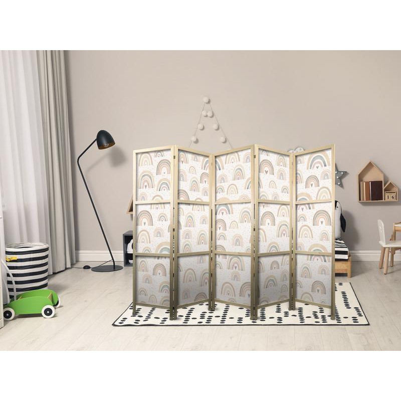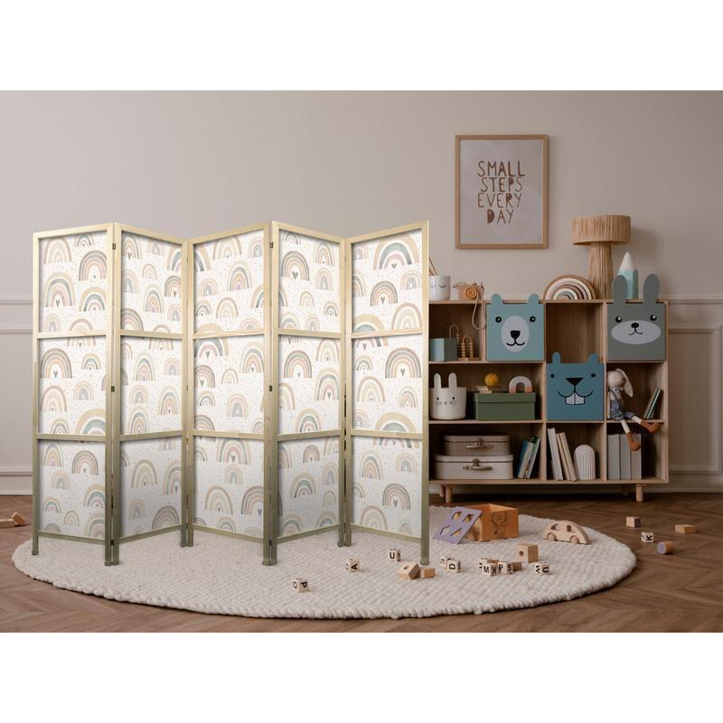 • Biombo japonês - Spring - Pastel rainbows on a rainy day with hearts