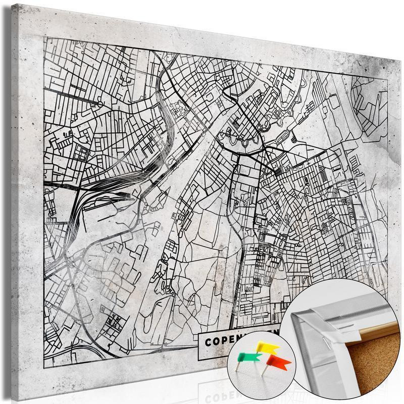 O quadro de cortiça "Quadro de cortiça - Copenhagen Plan" é um produto dedicado a pessoas que pretendem uma decoração original de parede. O material ecológico e design interessante transforma um quadro de cortiça vulgar numa decoração com estilo que pode utilizar de qualquer forma. Pode-se afixar no quadro de cortiça pioneses em locais num mapa-mundo ou com notas. O quadro de cortiça "Quadro de cortiça - Copenhagen Plan" é muito mais leve do que decorações de parede tradicionais. Pode-se colocar o quadro de cortiça decorativo em qualquer lugar da casa ou num escritório. A tela com impressão é aplicada em cima da cortiça. A impressão tem boa definição de cores e mostra todos os detalhes. Cole-a e fixe pioneses com as suas notas e cria a sua própria decoração na sua parede. O mapa de cortiça é um presente perfeito para quem adora viajar.