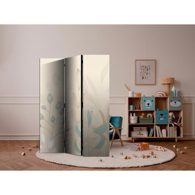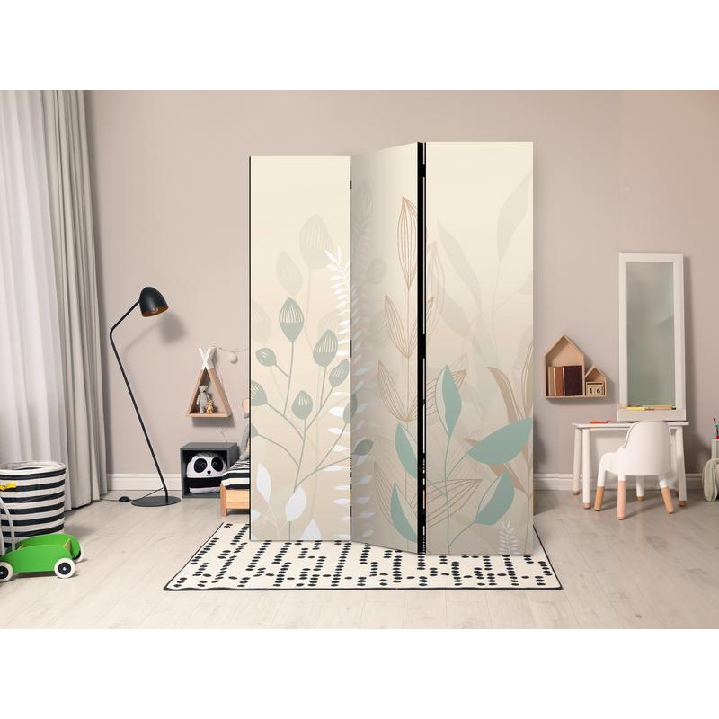 • Biombo - Morning in the Meadow - Various Pastel Plants on a Beige Background