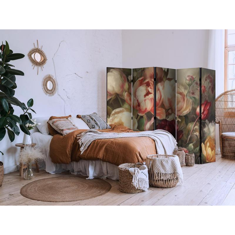 • Biombo - Blooming Peonies - Charismatic Flowers Bathed in Sunlight