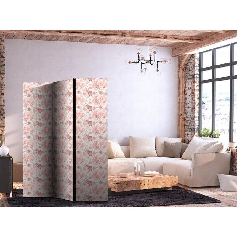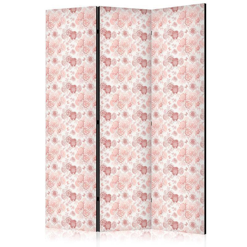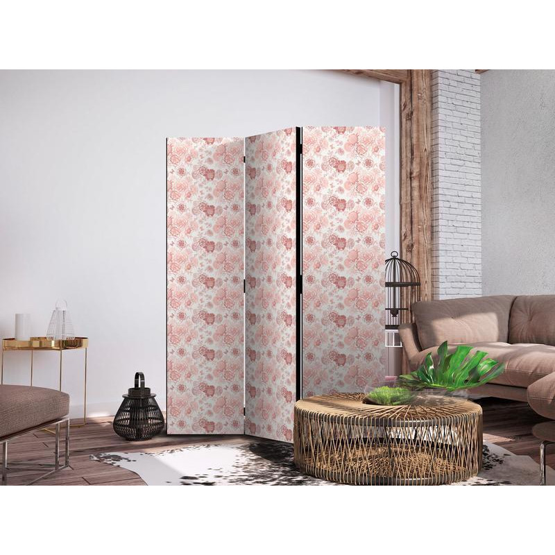 • Biombo - Pink Blossoming - Flowers in Warm Colors on a White Background