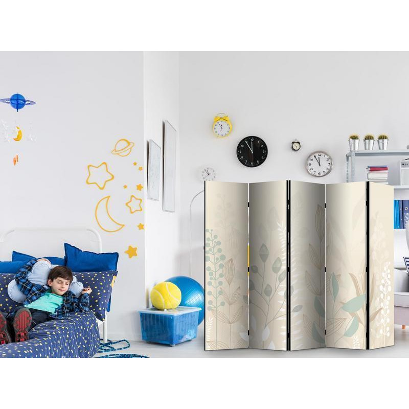 • Biombo - Morning in the Meadow - Various Pastel Plants on a Beige Background